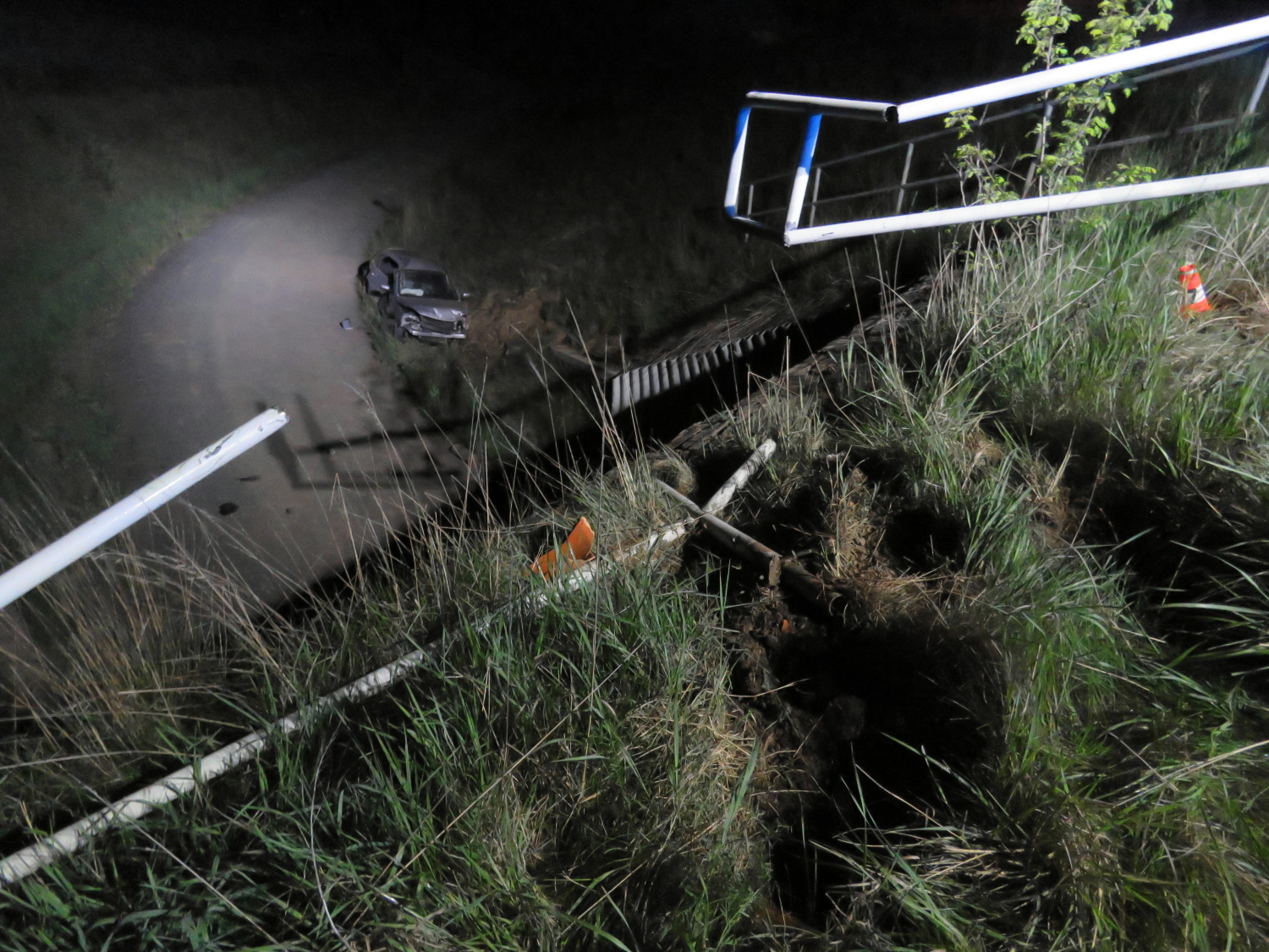 Samotnému řidiči se po čelním střetu s kancem zaktivovaly airbagy, které mu znemožnily další výhled na silnici. Následně najel na začínající svodidla v protisměru a s protrženou vanou motoru sjel mimo komunikaci. Pak narazil do zábradlí, které prorazil a zhruba z 8 metrové výšky letěl i s vozidlem vzduchem. Po 20 metrech dopadl na silnici vedoucí pod komunikací, kde došlo ke střetu se zvěří. Po opuštění havarovaného vozidla zastavil projíždějící kamion, a požádal řidiče o vyrozumění policistů o nehodě.