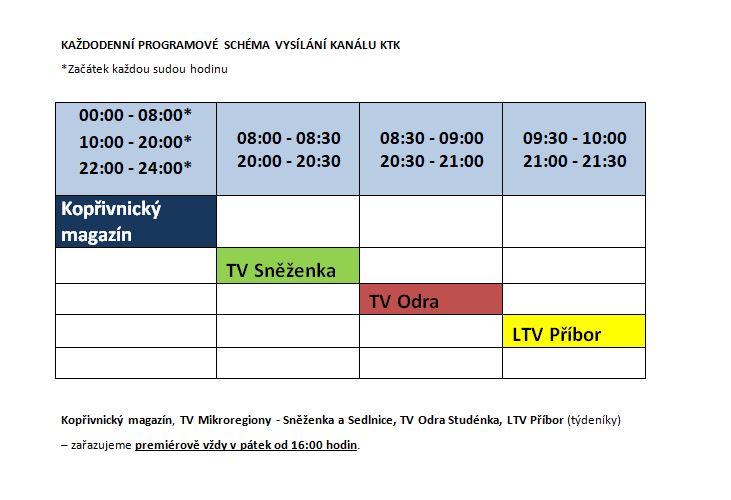 NOVÉ PROGRAMOVÉ SCHÉMA VYSÍLÁNÍ KTK OD 1. 3. 2018